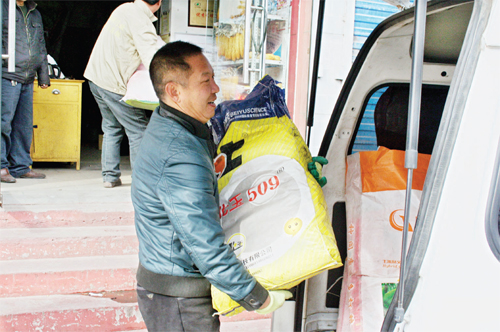 2月13日,原平市宇峰種業(yè)工作人員正在為種子銷售點運送各種優(yōu)良種子。目前該市農資部門已經(jīng)為農民們準備好了各種化肥、種子、農機具等,為今年春耕備耕做好了準備。(趙春曉 攝)