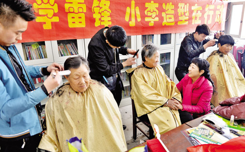 3月9日,在定襄縣蔣村鄉(xiāng)上東留村委會,剛剛理完發(fā)的梁大娘動情地拉著該村第一書記張瑞蓮的手連夸:“好書記,好閨女!”張瑞蓮是由定襄縣委組織部下派到農(nóng)村任職的干部,今年以來她牽頭為村民辦了許多實事。當日,她主動聯(lián)系了縣城小李造型學(xué)雷鋒小組的5名理發(fā)師,免費為全村70多名老年人理了發(fā)。(張晉蘭 攝)