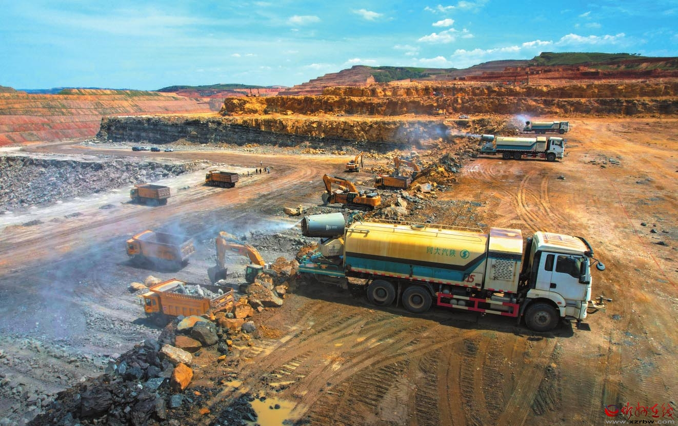 走進(jìn)礦區(qū),記者看到:采場(chǎng)邊,一臺(tái)霧炮車(chē)正“突突”作響,白色水霧精準(zhǔn)覆蓋挖掘區(qū)域;運(yùn)輸?shù)郎?,限?0公里的標(biāo)識(shí)醒目,兩臺(tái)濕掃車(chē)來(lái)回穿梭,所過(guò)之處路面水潤(rùn)無(wú)塵;爆破作業(yè)區(qū),抑塵車(chē)同步啟動(dòng),水幕裹著炸起的碎石“溫柔落地”……