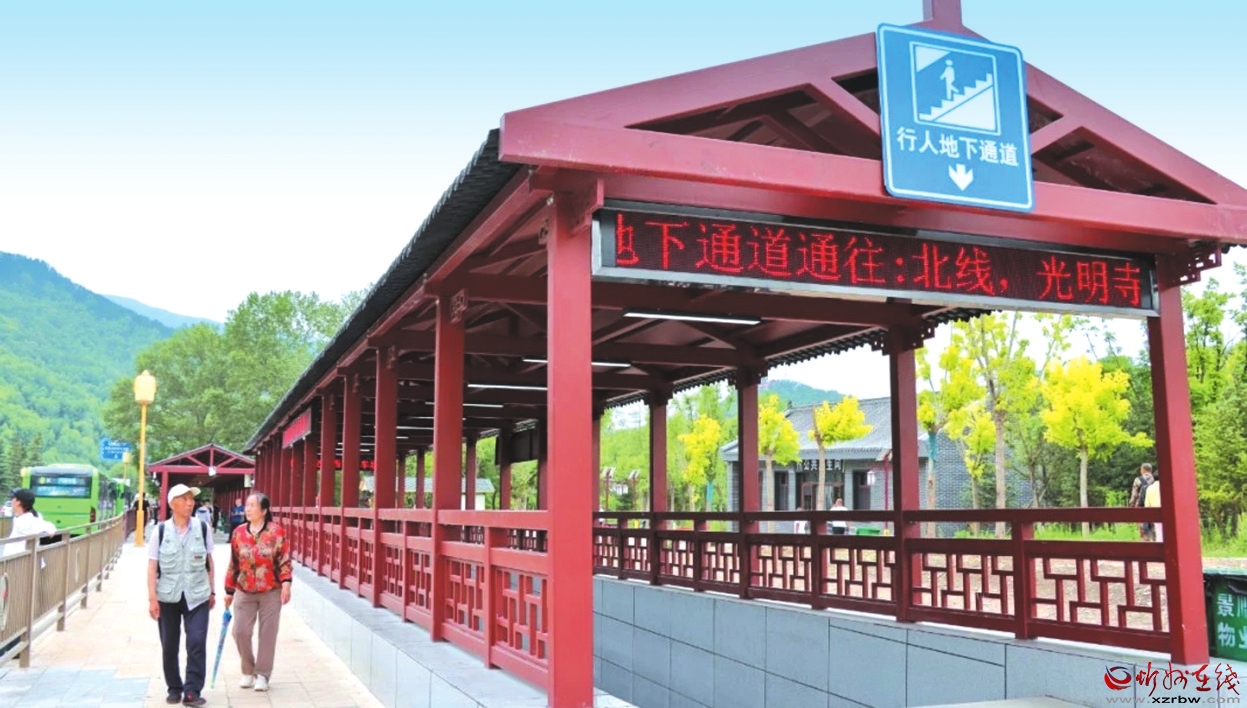 據(jù)了解,殊像寺通道全長(zhǎng)25.70米,建筑面積541平方米;黛螺頂通道全長(zhǎng)52.30米,建筑面積672平方米,凈寬均達(dá)6米。工程嚴(yán)格遵循高標(biāo)準(zhǔn)規(guī)劃,涵蓋通道主體結(jié)構(gòu)、排水系統(tǒng)、照明設(shè)施及市政綜合管線改造等核心內(nèi)容。地面采用防滑地磚鋪設(shè),配套完善下水道排水系統(tǒng),確保雨雪天氣人們通行安全。通道出入口與公交站點(diǎn)無(wú)縫銜接,并設(shè)有無(wú)障礙通行緩坡,為攜帶行李或行動(dòng)不便的游客提供便捷,實(shí)現(xiàn)“下車即達(dá)、過(guò)街即乘”的“零距離”換乘體驗(yàn)。
