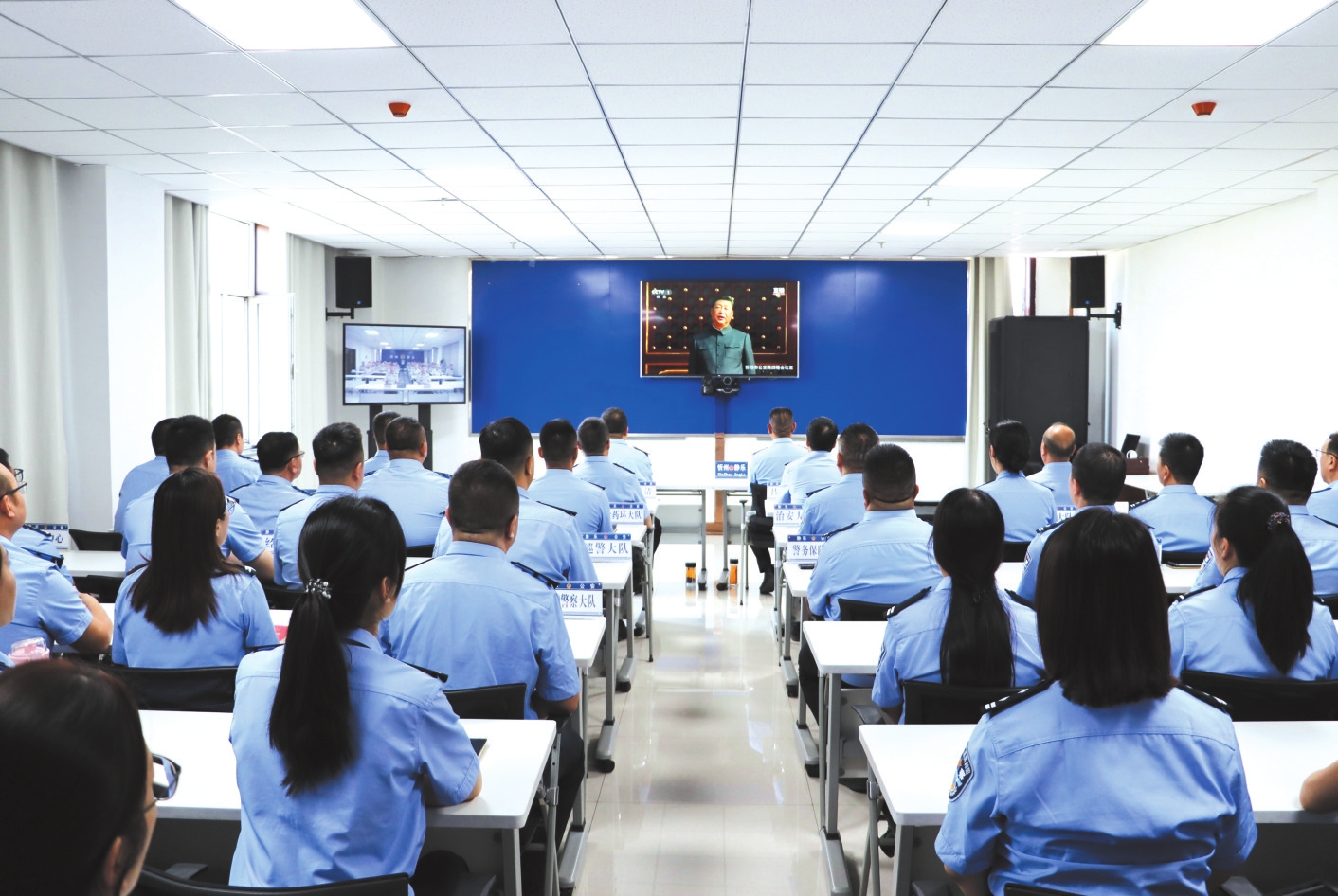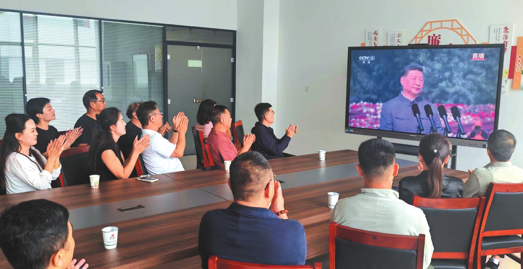 靜樂縣公安局干警觀看紀(jì)念大會(huì)。喬秀乾攝