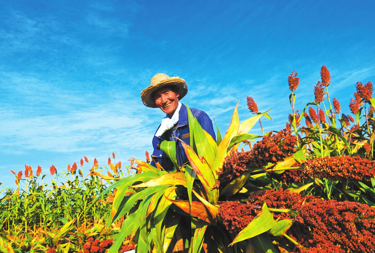 定襄縣蔣村鎮(zhèn)史家崗村的高粱開鐮收割。張晉蘭攝
