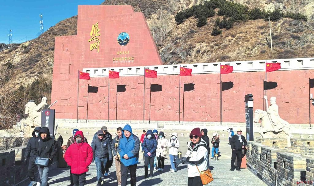 11月17日,雁門關(guān)景區(qū)雖然氣溫驟降,但擋不住游客前往旅游的熱情。來自全國各地的游客不懼嚴寒,游走在雁門關(guān)關(guān)隘兩翼,不時拍照打卡。(董應(yīng)贊攝)