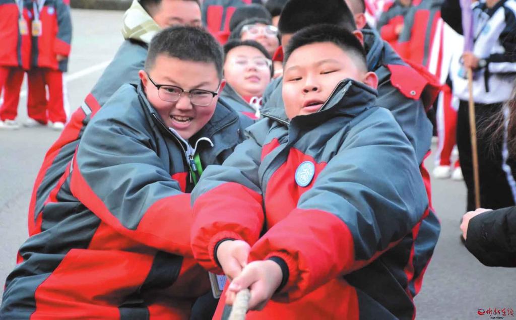 近日,忻州市北方初級(jí)中學(xué)舉行了冬季拔河比賽。比賽哨聲一響,賽場(chǎng)瞬間沸騰,參賽隊(duì)員們緊握長(zhǎng)繩,雙腳蹬地,身體后傾;老師們化身為啦啦隊(duì)長(zhǎng),揮動(dòng)雙臂,聲嘶力竭地為隊(duì)員們指揮節(jié)奏;各班同學(xué)則自發(fā)組成陣容強(qiáng)大后援團(tuán),將現(xiàn)場(chǎng)氛圍一次次推向高潮。(記者馮偉倫攝)