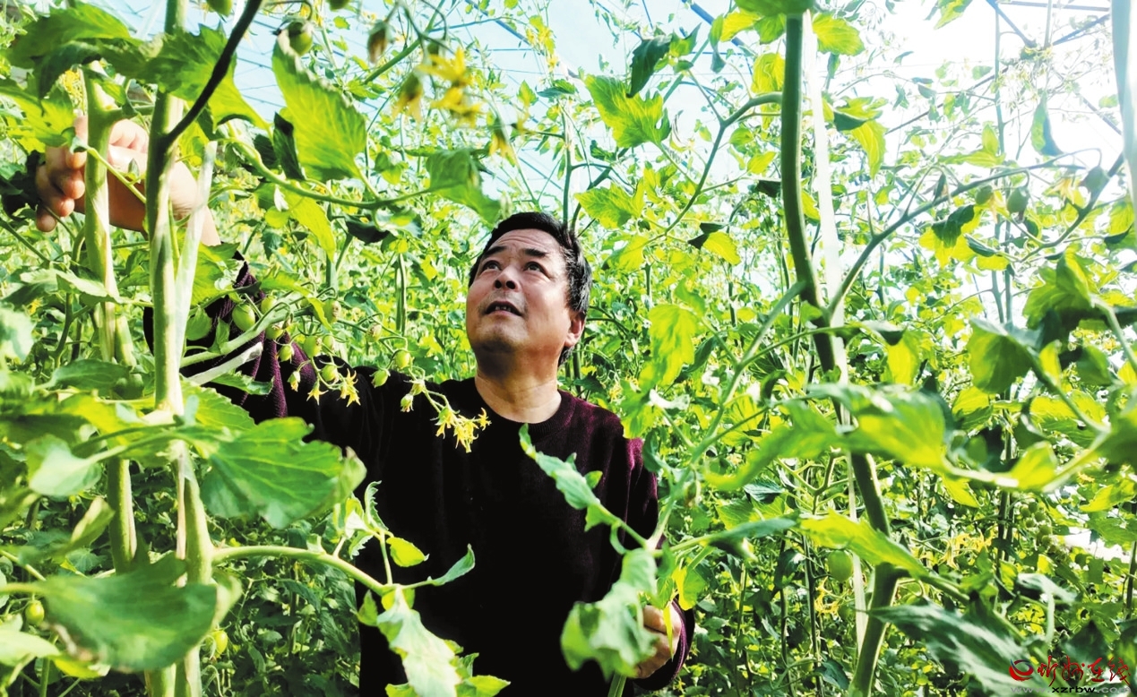武文光察看圣女果長勢。本報(bào)記者 劉 捷攝