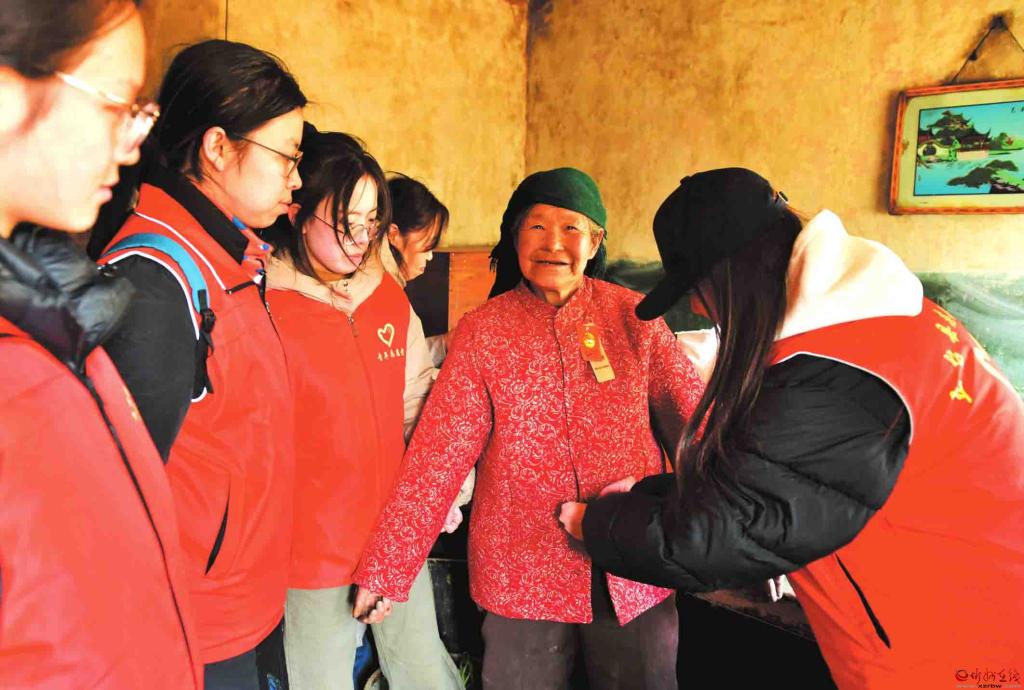近日,五臺(tái)縣志愿者協(xié)會(huì)協(xié)同工業(yè)園社區(qū)志愿者和大學(xué)生志愿者,帶著精心準(zhǔn)備的年貨,走進(jìn)溝南鄉(xiāng)翟子溝村、東雷鄉(xiāng)東山底村、陳家莊鄉(xiāng)王城村等地,看望慰問十二戶孤寡老人和困難家庭,向他們送上社會(huì)各界的關(guān)懷和新春的溫暖祝福。圖為志愿者為腿腳不便的高齡老人試穿新衣服。(盧俊華 攝)