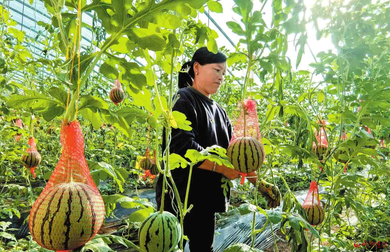 寧武縣充分發(fā)揮地域優(yōu)勢(shì),把設(shè)施蔬菜產(chǎn)業(yè)作為鞏固拓展脫貧攻堅(jiān)成果同鄉(xiāng)村振興有效銜接的有力抓手,積極扶持、鼓勵(lì)農(nóng)民大力發(fā)展周期短、產(chǎn)量高、單價(jià)高的設(shè)施蔬菜產(chǎn)業(yè),帶動(dòng)群眾增收致富。圖為鳳凰鎮(zhèn)周家堡村農(nóng)民在大棚采摘西瓜。(記者劉紀(jì)森攝) (責(zé)任編輯:盧相汀) |