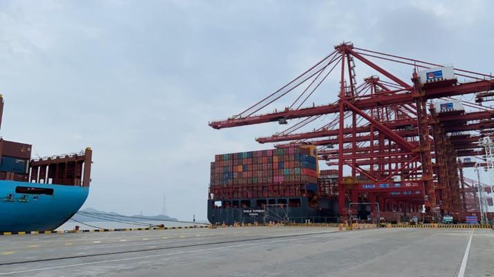 ▲寧波舟山港:通過5G輪胎式龍門吊遠(yuǎn)程操控,作業(yè)人力成本降低50%以上。 4月17日,習(xí)近平總書記主持召開中共中央政治局會議。會議強調(diào)要堅定擴大對外開放,保障國際物流暢通,嚴(yán)把防疫物資出口質(zhì)量關(guān),推動共建“一帶一路”高質(zhì)量發(fā)展。 海關(guān)總署數(shù)據(jù)顯示,今年上半年,中國貨物貿(mào)易進(jìn)出口總值14.24萬億元,同比下降3.2%,降幅較前5個月收窄1.7個百分點。在嚴(yán)峻復(fù)雜的外部環(huán)境下,我國上半年外貿(mào)進(jìn)出口交出了超預(yù)期的成績單。 7月,寧波舟山港,一艘艘貨輪進(jìn)出繁忙,行駛得又穩(wěn)又快。又穩(wěn)又快的還有中國對外開放的腳步。