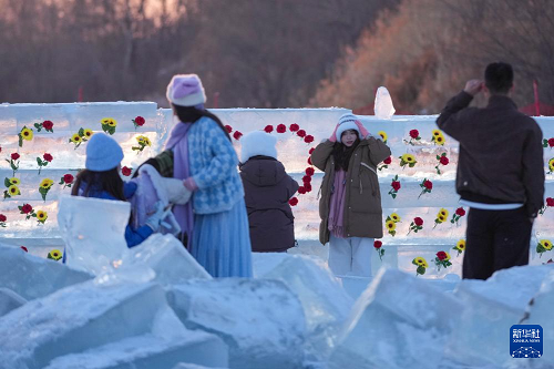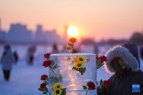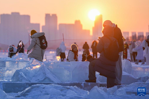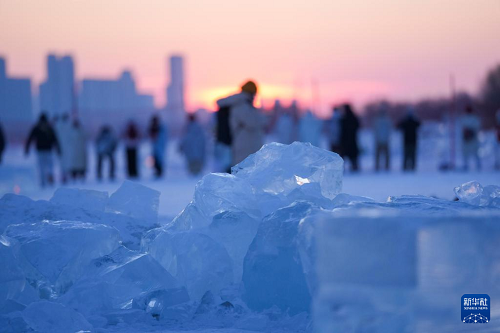 時(shí)下,“冰城”哈爾濱市正值冰雪旅游旺季。松花江哈爾濱段一處采冰場(chǎng),由于大量堆積高純凈度的冰塊,而被游客稱為“鉆石?!?,成為網(wǎng)紅景區(qū)。只要是晴好天氣,都會(huì)有許多游客來到“鉆石?!本皡^(qū),欣賞浪漫的落日美景。
