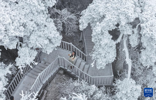 1月22日,游客在湖南省衡陽市南岳衡山風(fēng)景區(qū)賞景游玩。(新華社發(fā) 曹正平 攝)