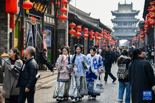 2月27日,游客在山西省晉中市平遙古城游玩。(新華社記者 曹陽(yáng) 攝)