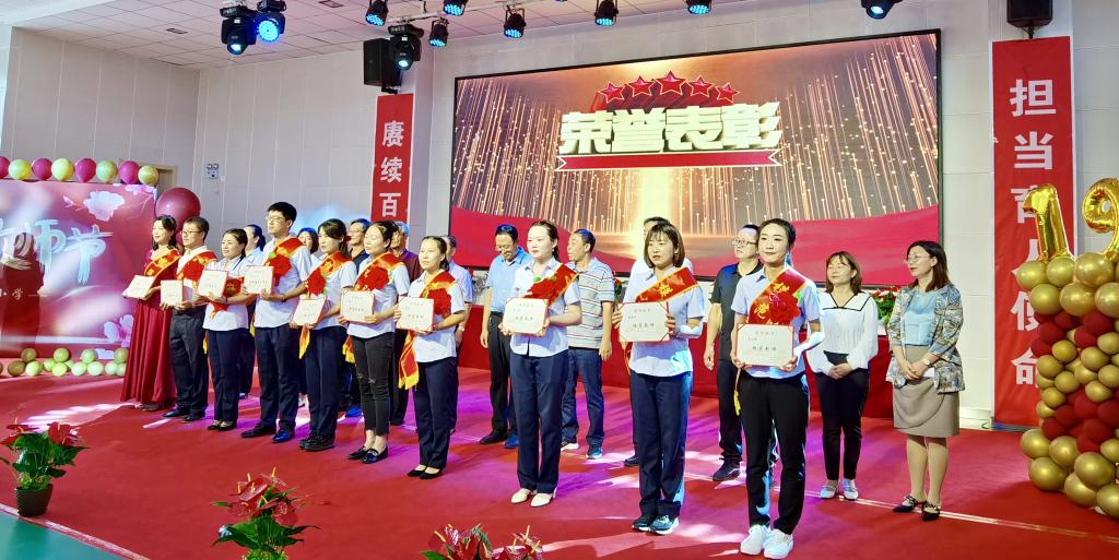 活動現場,學校對14名優(yōu)秀教師進行了表彰,其中1名為優(yōu)秀教育工作者,8名為模范教師,5名為模范班主任。通過表彰先進,鼓勵老師們再接再厲,繼續(xù)發(fā)揮愛崗敬業(yè)、立德樹人,三尺講臺育英才的精神,為下一代成長教育發(fā)揮更大的作用。