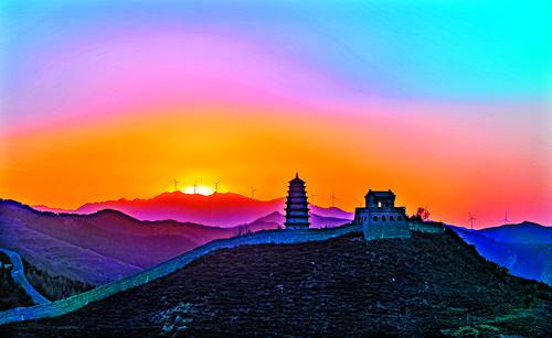 山勢險峻的雁門關(guān),四季都有獨特的風景。春天,百花盛開,使得雄渾的長城燦爛奪目;夏天,色彩斑斕,背靠翠綠的山林,呈現(xiàn)生機勃勃的景象;秋天,丹楓如火,由綠轉(zhuǎn)黃,由黃轉(zhuǎn)紅,如詩如畫,美不勝收;冬天,長城被雪花覆蓋,顯得更加滄桑,猶如童話世界般靜謐而誘人。