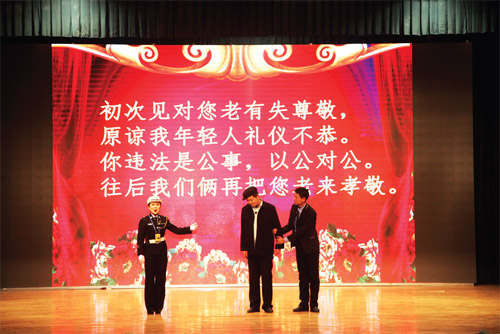 1月27日至29日,偏關(guān)縣公安局交警大隊交通安全文藝宣傳隊在隊長們的帶領(lǐng)下,先后走進(jìn)市實驗中學(xué)、市客運中心、國家電網(wǎng)忻州供電分公司進(jìn)行了三場演出,用自編自導(dǎo)自演、群眾喜聞樂見的“漫翰調(diào)”、“二人臺”、北路梆子、民歌等一系列極具地域文化特色的地方小戲、說唱歌舞等曲藝形式進(jìn)行宣傳演出,贏得滿堂喝彩,場場掌聲雷動。作為春節(jié)回家路上的一道文化盛宴,這次春節(jié)前的平安出行警示教育“送安全下鄉(xiāng)”巡演是我市公安交警精心策劃、編排的春運交通安全宣傳行動之一。28日,市客運中心人頭攢動,熙熙攘攘,大廳外懸掛的橫幅標(biāo)語“守護(hù)您的平安出行,保障道路安全暢通是每一位交警的神圣職責(zé)!”格外醒目。候車大廳里,暖意融融,市公安局交警支隊組織的春運交通安全文藝演出正在進(jìn)行,交警版的民間小調(diào)《拜大年》、小品《警鐘聲聲》、雙簧《二愣子》等節(jié)目令人賞心悅目、捧腹不止。在歡笑之余,提醒和教育廣大群眾自覺抵制不文明、不安全交通行為,觀看演出的旅客和客車司機(jī)紛紛感慨,這樣的宣傳教育生動形象,人人愛看且耐人尋味,警示作用很大。