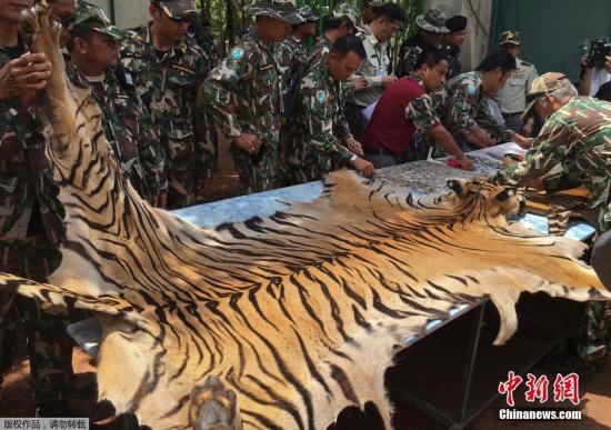 資料圖:當地時間6月2日,據外媒報道,泰國野生動物保護機構又在涉事寺廟中發(fā)現了虎皮和大批用老虎尸體制作的護身符。