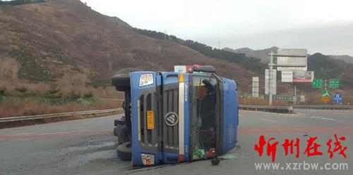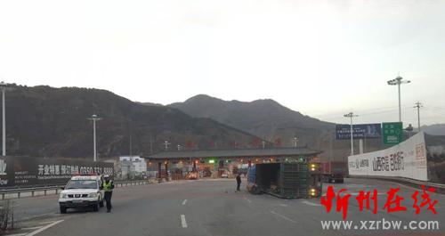 2016年11月19日17時00分許,山西交警高速二支隊(duì)九大隊(duì)民警翟躍、郭騏源接到報(bào)警稱:在五保高速12km(五臺山景區(qū)收費(fèi)站內(nèi)廣場)處,有一輛藍(lán)色歐曼牌重型半掛貨車因操作不當(dāng),將掛車內(nèi)裝的鋼棒側(cè)滑,導(dǎo)致車輛側(cè)翻,造成車輛及路產(chǎn)不同程度損壞的道路交通事故。大隊(duì)民警第一時間趕赴現(xiàn)場,及時詢問當(dāng)事人是否受傷,是否需要撥打“120”急救,并了解了當(dāng)時的事發(fā)情況。當(dāng)事人稱:“自己一個人開車回定襄,為省過路費(fèi),想著從五臺山景區(qū)高速口下,繞行低速回定襄,由于在下匝道時,打方向過急,車速較快,將車上所拉的鋼棒側(cè)滑,造成車輛的側(cè)翻,所幸人沒有受傷?!敝?,民警對現(xiàn)場進(jìn)行勘查,并調(diào)取監(jiān)控視頻,發(fā)現(xiàn)車輛在轉(zhuǎn)彎時,車速較快,駕駛員操作不當(dāng)是造成事故發(fā)生的原因。