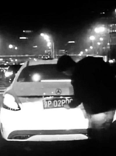 白色奔馳車司機鬧市調換車牌,不想被人全程拍攝了下來