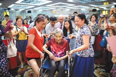 2016年7月9日,重慶雙百歲老人夫妻過生日,子女們特意為他們在解放碑渝都酒店舉辦了一場雙百盛典。圖/視覺中國