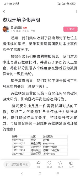 近日,英雄聯(lián)盟主播被質疑使用腳本鬧得沸沸揚揚。在經歷網友錄屏鑒定、主播自證辯解后,英雄聯(lián)盟官方下場,通過技術手段多重復查,幾位大主播求錘得錘終于被封號三年,大快人心。