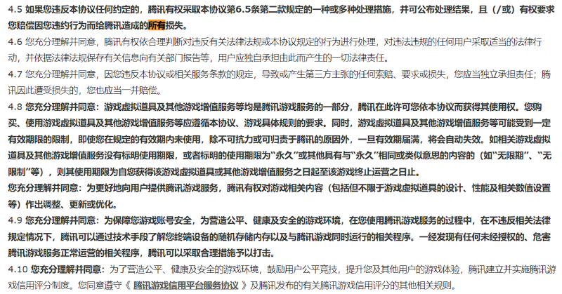 第二,玩家有義務遵守游戲規(guī)則。 所有網游初次進入游戲都會看到一份密密麻麻的游戲服務協(xié)議,用戶不同意則不能享受游戲內容,包括騰訊在內運營商為什么都這么做?因為國家規(guī)定。根據《網絡安全法》《互聯(lián)網信息服務管理辦法》《互聯(lián)網用戶賬號信息管理規(guī)定》,互聯(lián)網信息服務提供者應當依照法律法規(guī)有關規(guī)定,制定和公開互聯(lián)網用戶賬號管理規(guī)則、平臺公約,與用戶簽訂服務協(xié)議,明確賬號信息注冊、使用和管理相關權利義務。玩家使用賬號如果違反法律法規(guī)、用戶協(xié)議的,互聯(lián)網信息服務提供者有權采取警示提醒、限期改正、限制賬號功能、暫停使用、關閉賬號、禁止重新注冊等處置措施。 網絡游戲的壽命是有限的,一如我們的青春。如果你真的熱愛電子競技,請不要使用外掛。當你老了想起曾經游戲陪伴度過的青春,回憶里浮現(xiàn)的恰好應當是一場公平公正的較量、一群配合默契的隊友、一次驚心動魄的翻盤。問心無愧拼盡全力,足矣。 (責任編輯:蔡文斌) |