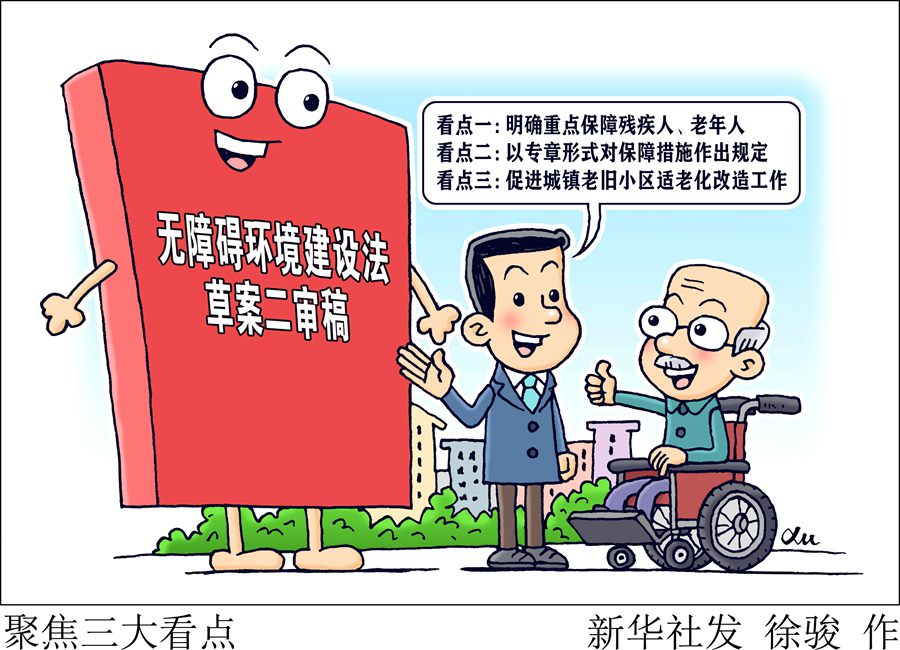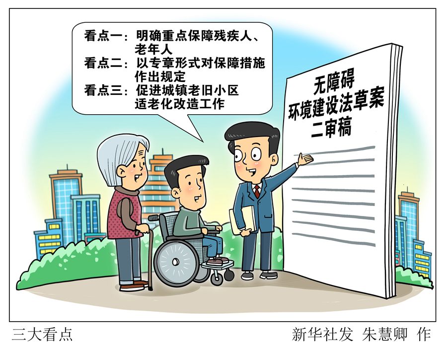 去年10月草案一審稿提請審議后,征求各方面意見。此次提請十四屆全國人大常委會第二次會議審議的草案二審稿,吸納各方面意見建議,突出無障礙環(huán)境建設(shè)基本定位,增加“保障措施”專章,進(jìn)一步完善城鎮(zhèn)老舊小區(qū)無障礙設(shè)施和適老化改造中加裝電梯問題有關(guān)規(guī)定,在“重點(diǎn)”“難點(diǎn)”問題上精準(zhǔn)“出招”。