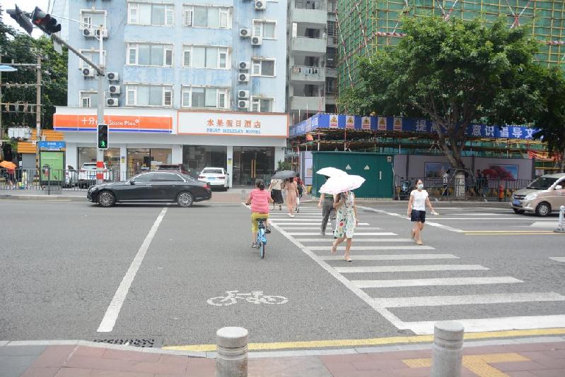 圖為8月1日記者拍攝的廈門體育路與育秀東路交叉口的非機(jī)動(dòng)車與行人分流的斑馬線。新華社記者顏之宏 攝