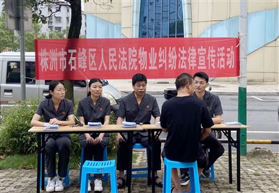 圖為株洲市石峰區(qū)人民法院干警前往社區(qū)開(kāi)展物業(yè)糾紛法律宣傳活動(dòng)。 譚爽瑾 攝