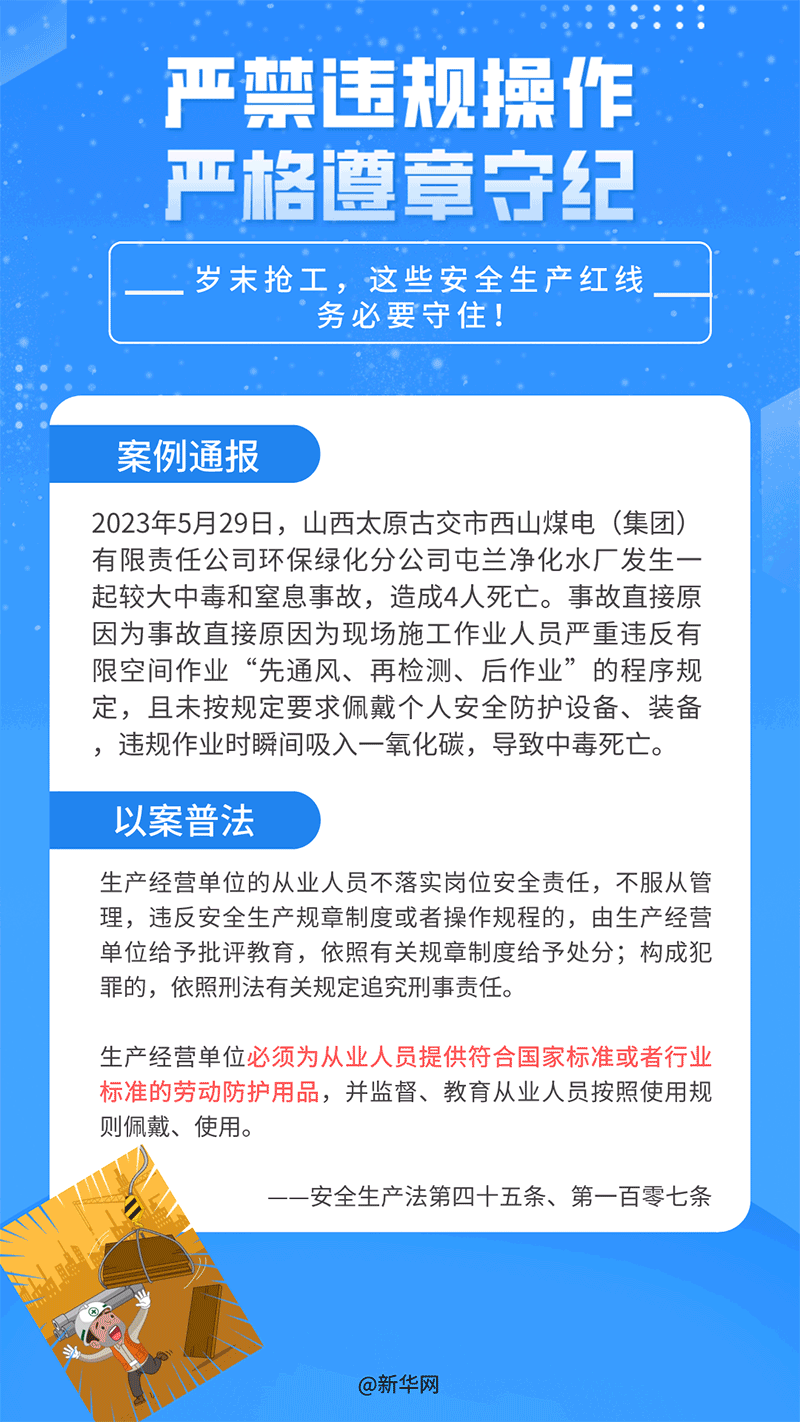 12月1日至7日是第七個(gè)安全生產(chǎn)法宣傳周,又恰逢歲末年初,生產(chǎn)經(jīng)營建設(shè)活動(dòng)進(jìn)入旺季,一些企業(yè)搶工期、趕進(jìn)度,人們思想管理容易產(chǎn)生松懈麻痹的疲勞期,也是生產(chǎn)事故的高發(fā)期。以下是近期各地通報(bào)的部分案例,希望大家銘記安全,警鐘長鳴!