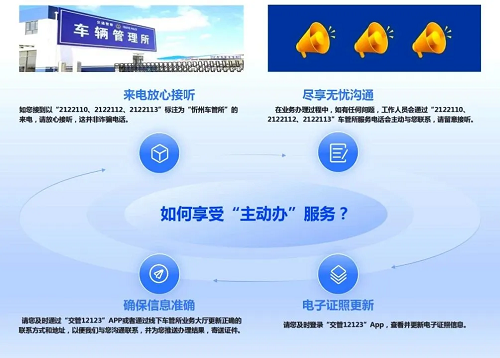 為了讓用戶更加安心地享受“主動辦”服務(wù),忻州市公安局交警支隊特別提醒廣大車主和駕駛員:當您接到以“2122110、2122112、2122113”標注為“忻州車管所”的來電時,請放心接聽。這些電話是車管所工作人員為了提供更加貼心、精準的服務(wù)而撥打的,絕非詐騙電話。?