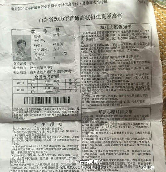 “如果不是他收到了通知書,我永遠(yuǎn)也不會知道這個秘密?!背I嬖V記者,他口中的“他”是室友兼摯友郭某。常升和郭某都是體育特長生,兩人今年高考成績相仿,在填報志愿的當(dāng)天,先后用體育老師遲老師的電腦填報了志愿,均為陜西師范大學(xué)的免費師范生。但是錄取通知一下,常升傻了眼,自己并沒有被錄取,但是比自己分?jǐn)?shù)更低的郭某卻收到了錄取通知書,而且陜西師范大學(xué)在山東招收的免費師范生還沒有招滿,種種情況讓常升十分不理解。圖為常升高考相關(guān)信息。