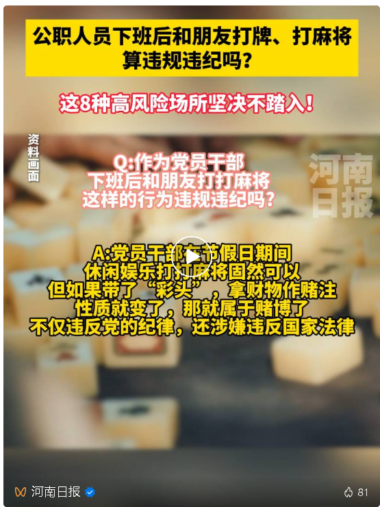 公職人員下班后和朋友打牌、打麻將,違規(guī)違紀(jì)嗎?