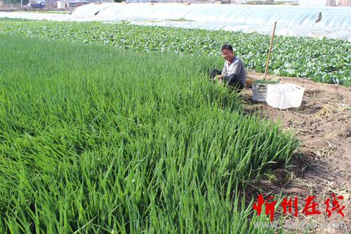 5月4日,原平市新原鄉(xiāng)解放街村菜農(nóng)正在從菜園中起菜。小蔥、生菜、西芹等當?shù)仵r菜陸續(xù)上市,既讓市民吃上新鮮蔬菜,又平抑了菜價,菜農(nóng)也增加了收入。(曹申義 攝)