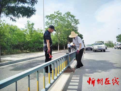 交警聞風(fēng)而動(dòng) 建設(shè)南路破損護(hù)欄底座全部更換