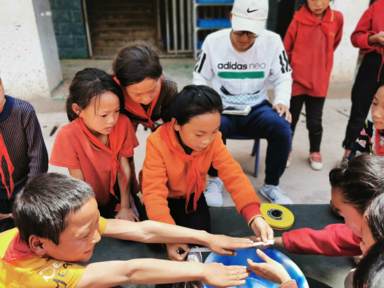 高亮在幫阿波覺村愛慕小學(xué)的學(xué)生進行體測。高亮/供圖