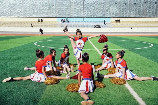 阿波覺村愛慕小學(xué)的啦啦操隊。邱玉光/供圖