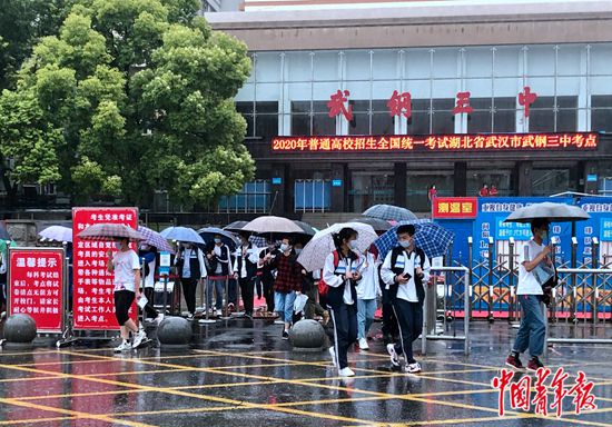 7月7日上午,湖北省武漢市武鋼三中考點,語文考試結束后,考生們陸續(xù)走出考場。中青報·中青網(wǎng)記者 朱娟娟/攝