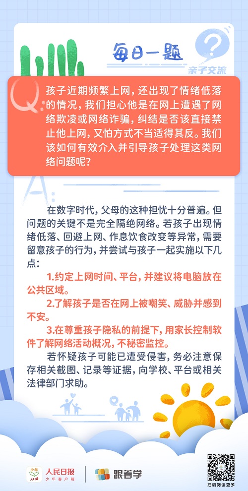 每日一題丨擔心孩子遭遇網(wǎng)絡欺凌,家長該怎么辦?