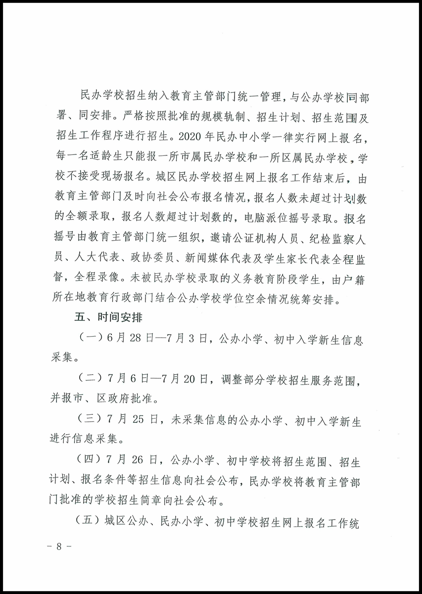 城區(qū)公辦、民辦小學(xué)、初中學(xué)校招生網(wǎng)上報(bào)名工作統(tǒng)一從8月1日上午8:00開始,8月4日18:00截止。