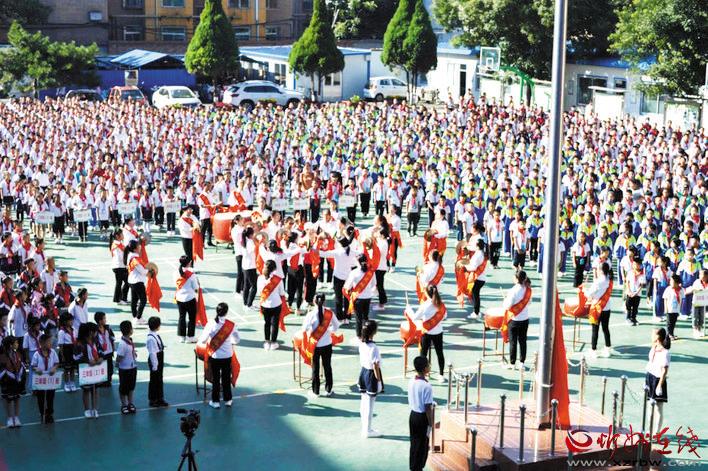 “老師,您辛苦了!”活動現(xiàn)場,少先隊員為前來上課的老師們以及馬路邊維持交通秩序的交警叔叔、護(hù)學(xué)崗志愿者鞠躬敬禮并戴上鮮艷的紅領(lǐng)巾,表達(dá)了同學(xué)們對老師、對長輩最誠摯的敬意?!爸x謝孩子們,這是我們應(yīng)該做的。祝同學(xué)們健康成長!”老師、叔叔阿姨回以鼓勵的話語。大會對學(xué)校師德標(biāo)兵、模范教師、優(yōu)秀班主任、先進(jìn)工作者進(jìn)行了表彰。