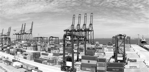 科倫坡南港集裝箱碼頭是中國和斯里蘭卡共建“21世紀(jì)海上絲綢之路”務(wù)實(shí)對接標(biāo)桿性項(xiàng)目,是南亞最深的集裝箱碼頭。據(jù)測算,南港碼頭項(xiàng)目在35年合同期直接稅賦將達(dá)18億美元。同時(shí),在建設(shè)和經(jīng)營期間可分別為當(dāng)?shù)貏?chuàng)造3000個(gè)和7500個(gè)直接就業(yè)機(jī)會(huì)。圖為科倫坡南港集裝箱碼頭。 新華社發(fā)