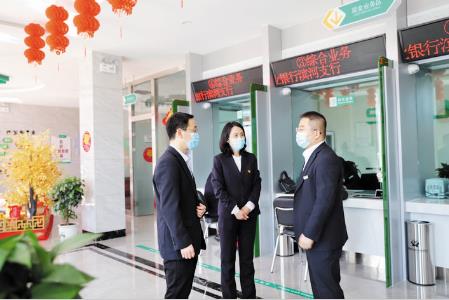 繁峙農(nóng)商銀行董事長李紅梅、行長宿俊斌在濱河支行檢查指導工作