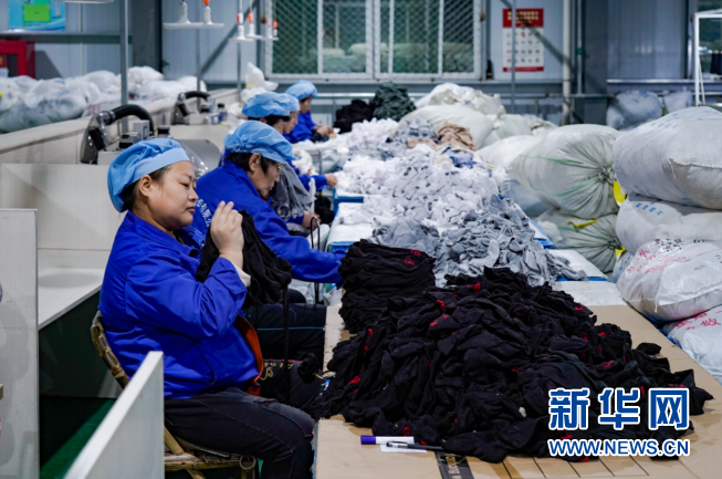 代縣扶貧產(chǎn)業(yè)園區(qū)雁弘紡織有限公司內(nèi),搬遷后的群眾實(shí)現(xiàn)了家門口就業(yè)。新華網(wǎng) 發(fā)