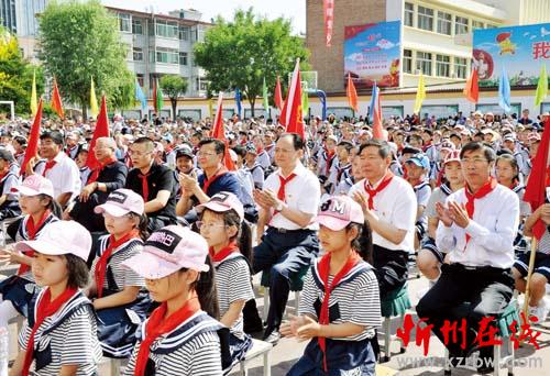 6月1日上午,李俊明來到忻州市七一路小學(xué)。寓教歌舞書畫,寄情德智體美,七一路小學(xué)先后被評為“全國語言文字規(guī)范化示范校”、“ 國家級規(guī)范漢字書寫教育特色學(xué)?!?、“國家級語言教改實(shí)驗(yàn)?!?、“國家級美術(shù)教育先進(jìn)學(xué)?!?。李俊明仔細(xì)察看學(xué)生書法作品,翻閱教師教案和學(xué)生作業(yè),了解學(xué)科教學(xué)創(chuàng)新舉措。響應(yīng)學(xué)校號召,李俊明在“手接手心連心,共創(chuàng)文明城市”倡議書上簽名助陣,與小學(xué)生們一起將心愿卡貼上心愿樹,同參加慶?;顒拥膶W(xué)生家長們親切交談,了解孩子們的學(xué)習(xí)情況。學(xué)校以“ 新時代,新夢想,新召喚”為主題慶?!傲弧保羁∶飨瞪霞t領(lǐng)巾,與小朋友們一起觀看文藝展演節(jié)目。