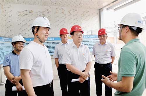 圖為省人大常委會(huì)副主任、市委書(shū)記李俊明在忻州經(jīng)濟(jì)開(kāi)發(fā)區(qū)調(diào)研藍(lán)寶石晶體及晶片制造加工項(xiàng)目建設(shè)情況。本報(bào)記者 劉紀(jì)森 攝