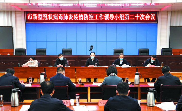 圖為市疫情防控工作領(lǐng)導(dǎo)小組第二十次會議會場。本報記者 劉紀(jì)森 攝