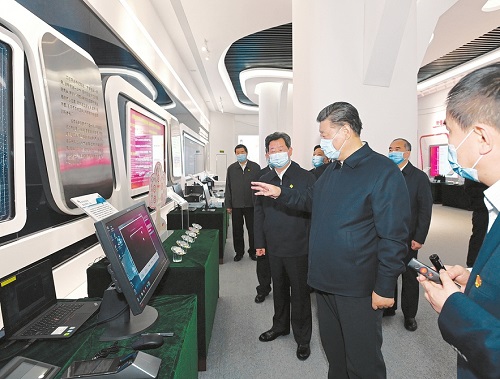 5月12日上午,習近平在太鋼不銹鋼精密帶鋼有限公司生產(chǎn)車間,了解企業(yè)復工復產(chǎn)情況。