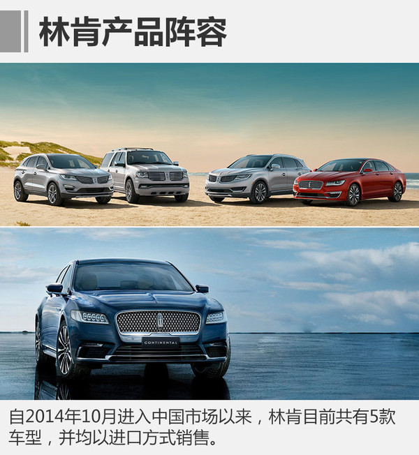 2014年10月,林肯正式進入中國市場,建立獨立經銷商網絡,同時帶來的還有兩款布局中型豪華轎車和中型豪華SUV市場的全新車型MKZ和MKC。作為福特旗下唯一的豪華品牌,林肯秉承美式豪華品牌的風格,極力打造不同于BBA式的產品特征。