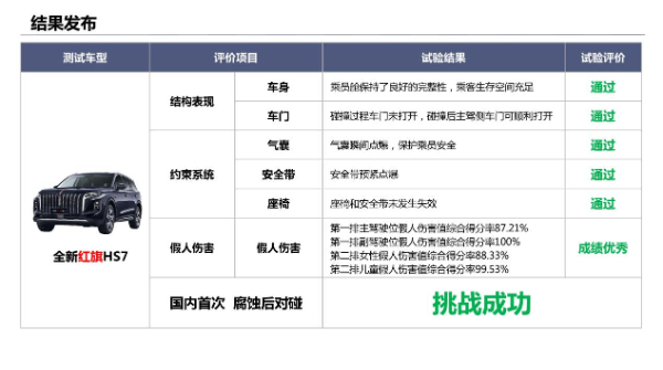 全新紅旗HS7成功通過腐蝕對碰挑戰(zhàn)并成為全國首個(gè)通過本次挑戰(zhàn)項(xiàng)目的車型,這一成績得益于一汽紅旗高品質(zhì)工藝。