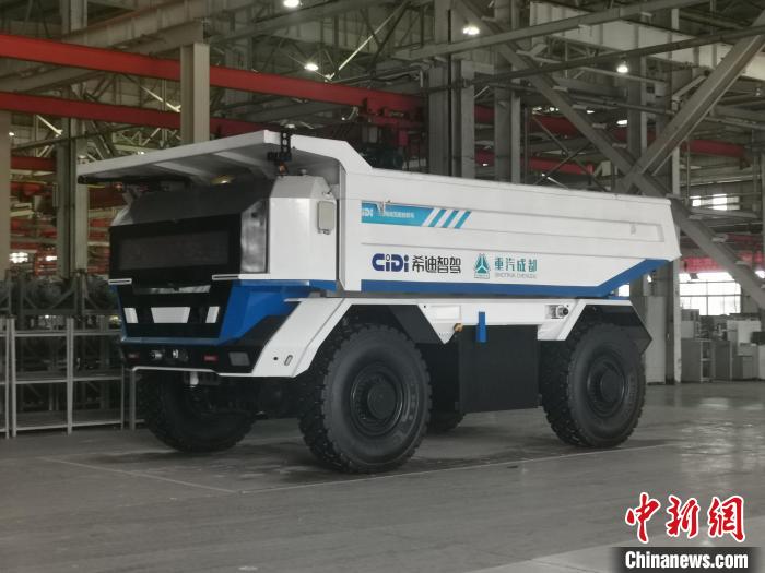 中國(guó)重汽集團(tuán)成都王牌商用車有限公司與希迪智駕共同打造的無人礦卡。(單鵬 攝)