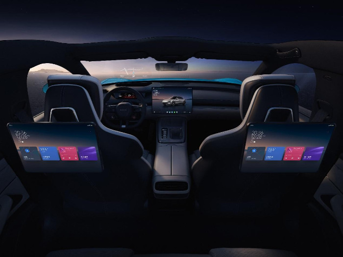 基于“以人為中心”的座艙交互架構(gòu)以及小米澎湃OS操作系統(tǒng)的加持,小米SU7實(shí)現(xiàn)從硬件到軟件的全面共享生態(tài),進(jìn)化成為移動(dòng)智能空間。該座艙搭載16.1英寸3K分辨率中控生態(tài)屏,56英寸HUD,車(chē)規(guī)級(jí)7.1英寸翻轉(zhuǎn)式儀表屏,采用2塊原生車(chē)機(jī)系統(tǒng)的小米Pad后排拓展屏,匹配驍龍8295座艙芯片,AI算力30TOPS,五屏聯(lián)動(dòng),帶來(lái)極致流暢的人車(chē)交互體驗(yàn)。